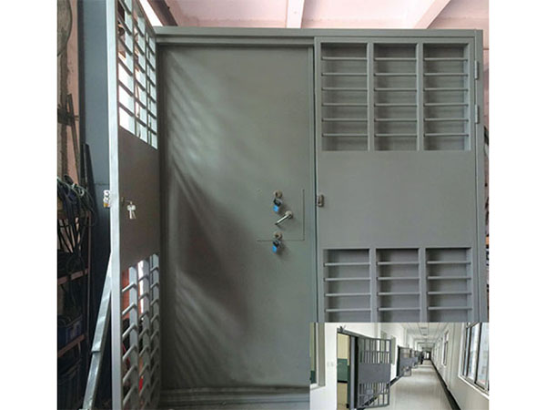 1、防护能力应符合GB 17565-1998 c级防范门的要求。 2、门轨应能承受使用普通机械手工具对轨道实施冲击钢琴切断破坏时传递给轨道的冲击力和刮矩,在20 min以内不得有轨道和辊子断裂或脱落。 3、监狱门在30 kg球形沙袋连续15次受到冲击时,受冲击表面不得发生8mm的凹陷变形。 4、监狱的门锁点在3okg球沙袋上连续15次的冲击不能打开门锁。